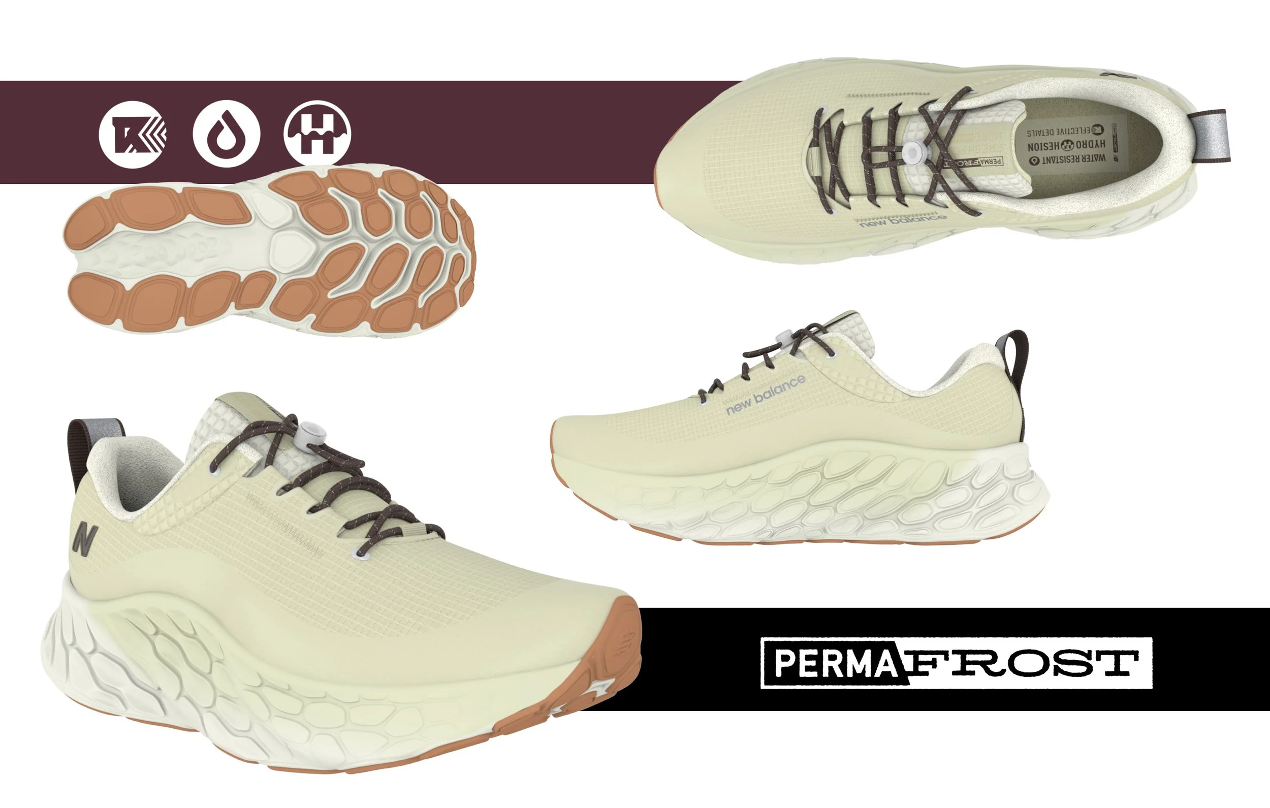 "Enjoy a stylish winterized version of the Fresh Foam X More v4 with the Permafrost edition. The most Fresh Foam used in any shoe to date, the latest in the line utilizes more Fresh Foam X, stacks it higher than ever before, and distributes it across the length of the shoe, offering a plush, yet stable underfoot experience. A data driven outsole applies the strategic placement of dramatic cushion zones and drastic flex zones promoting a natural stride while the silhouette’s rocker profile promotes a smooth transition and ride. All of this sits beneath a durable ripstop upper that keeps you locked with water-resistant comfort and support.”